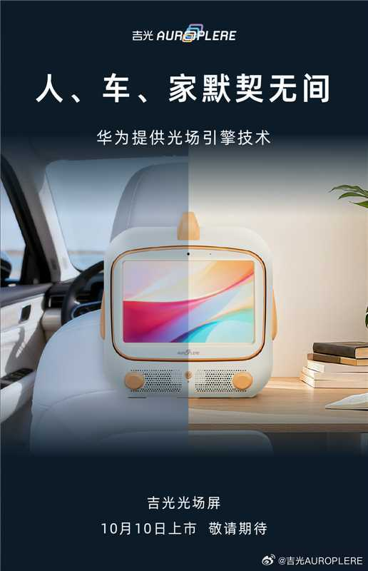IT之家 10 月 9 日消息,宁波玄甲视界智显科技有限公司官方微博 @吉光AUROPLERE 宣布,吉光光场屏上市发布会定档 10 月 10 日。